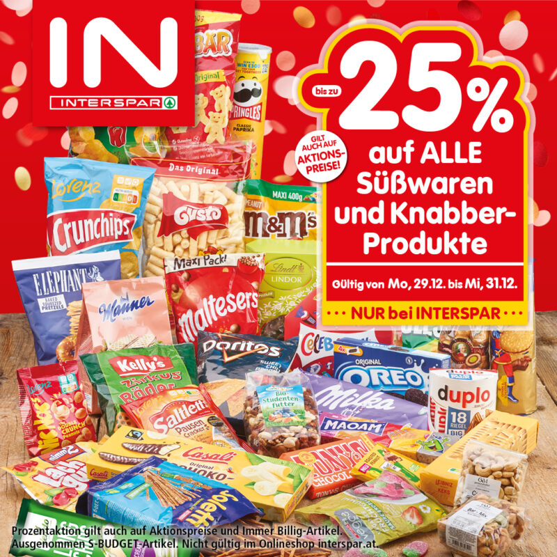 *Prozentaktion gilt auch auf Aktionspreise und Immer Billig-Artikel. Ausgenommen S-BUDGET-Artikel. Nicht gültig im Onlineshop interspar.at