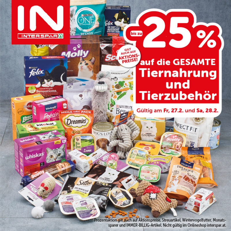 *Prozentaktion gilt auch auf Aktionspreise, Streuartikel, Wintervogelfutter, Monatssparer & IMMER BILLIG-Artikel. Nicht gültig im Onlineshop interpsar.at