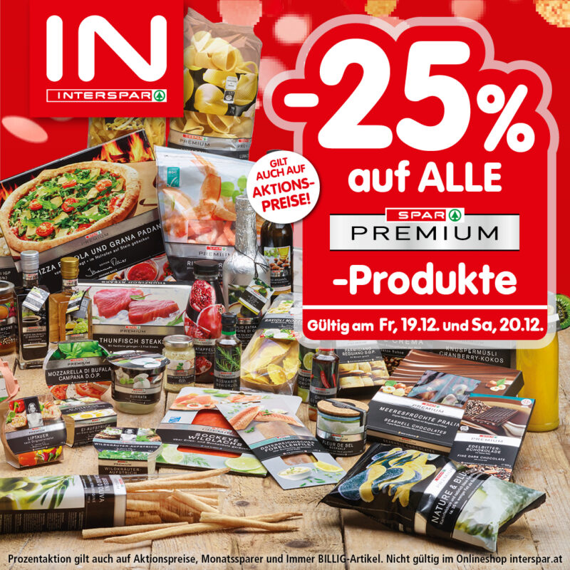 *Prozentaktion gilt auch auf Aktionspreise. Ausgenommen S-BUDGET-Artikel. Nicht gültig im Onlineshop interspar.at