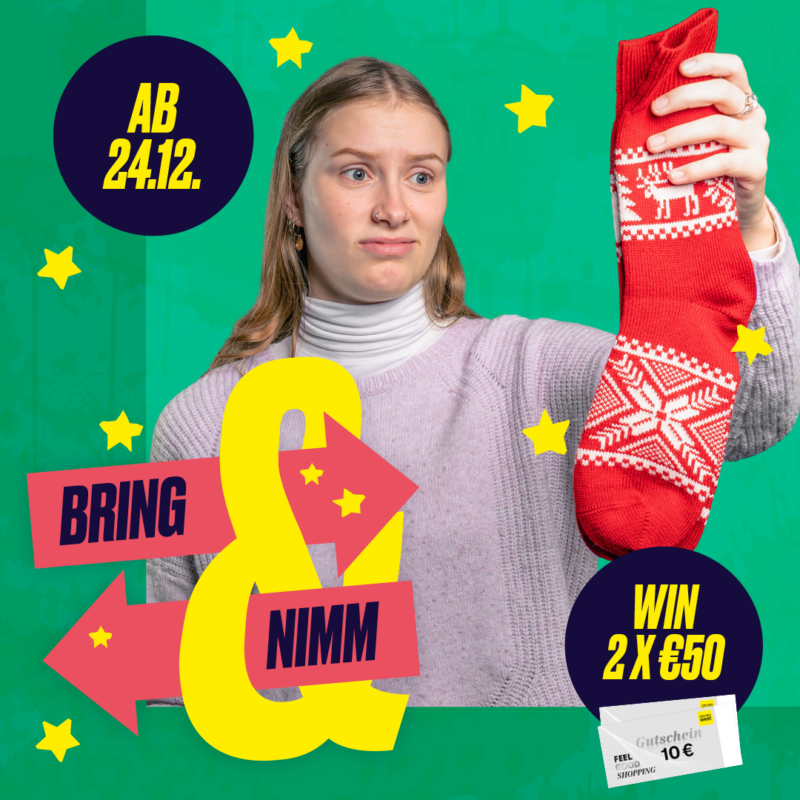 Mach auch gleich beim Gewinnspiel mit und sichere dir die Chance auf 1 von 2 × 50 € FEEL GOOD SCHEINEN! Nur im Center West, von 24.12. – 17.01.2026